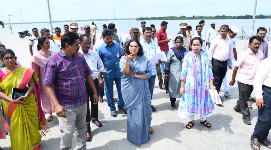 She further informed the officials that a large number of devotees are expected to visit Pavitra Sangamam, not only from the district but also from neighbouring areas, including Telangana. To accommodate this influx, the site should be adorned with electrical lighting, she said. Additionally, a sound system should be arranged for devotional songs during the Nava Haratulu period. She also directed the police department to ensure the necessary security arrangements.