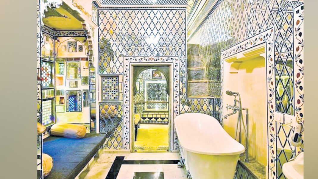 To the letter, it was squealing Rajasthani culture without fail. The ternary pointer made us feel slightly demented — how is stone being carved in the open? We saw panels being made of stone and relief work being combined with trellis work. And the same stone was untouched at the royal residence. Special gogunda stone bathrooms completed our regal experience!