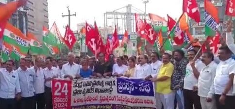 In a massive show of solidarity, thousands of employees and farmers’ representatives took to the streets today to protest against the privatization of the Visakhapatnam Steel plant. The united front demanded immediate government action on critical issues affecting both workers and farmers.