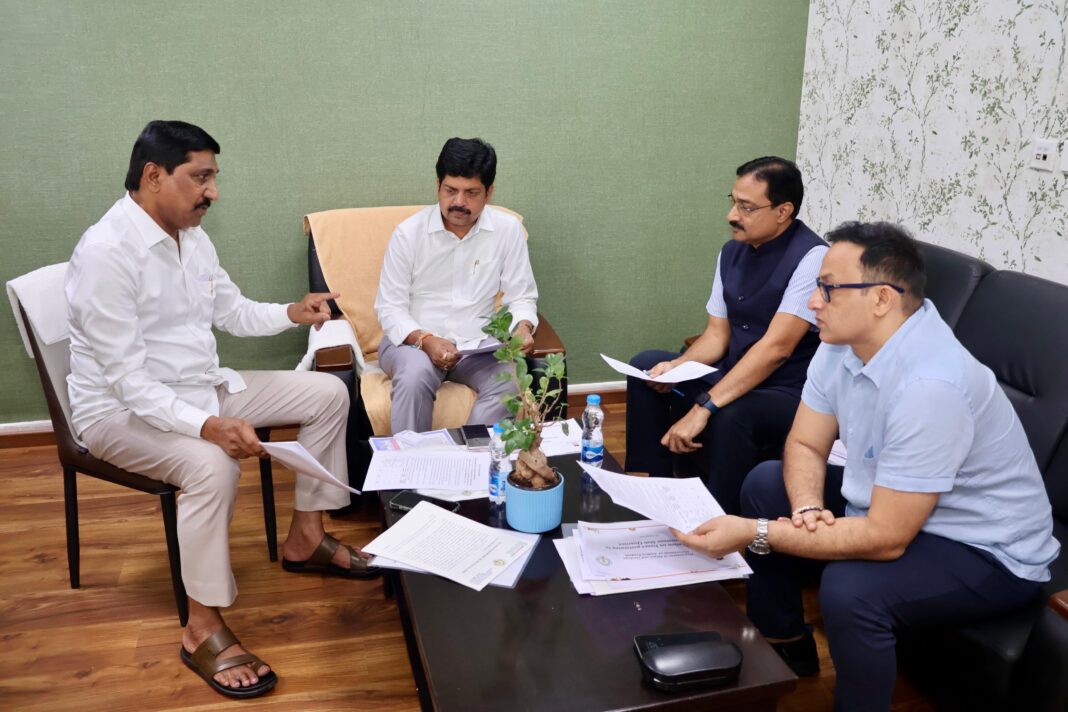 Minister for BC Welfare Janardhan Reddy met Minister for Mine Kollu Ravindra here on Tuesday, accompanied by Mine department Principal Secretary Mukesh Kumar Meena, Director Pravin Kumar and owners of napa raya quarries, brought to his notice the problems being faced by the napa raya quarry workers and owners. He explained to him various issues and difficulties prevailing in the napa raya quarry industry in the State.